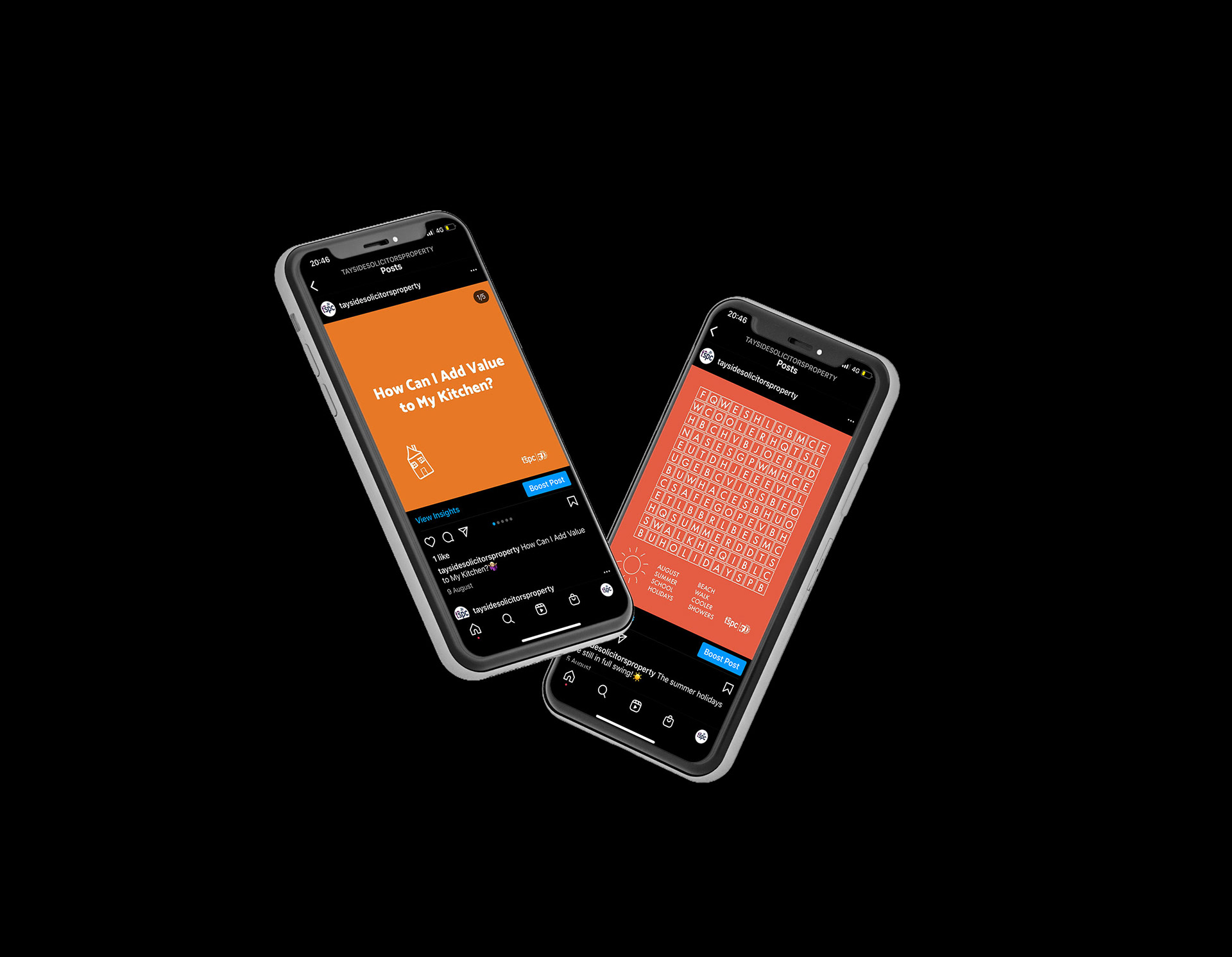 In 2021, I began working for tayside solicitors property centre creating content for their social media channels. this content consists of graphic based social media posts, infographics and blogs/articles.